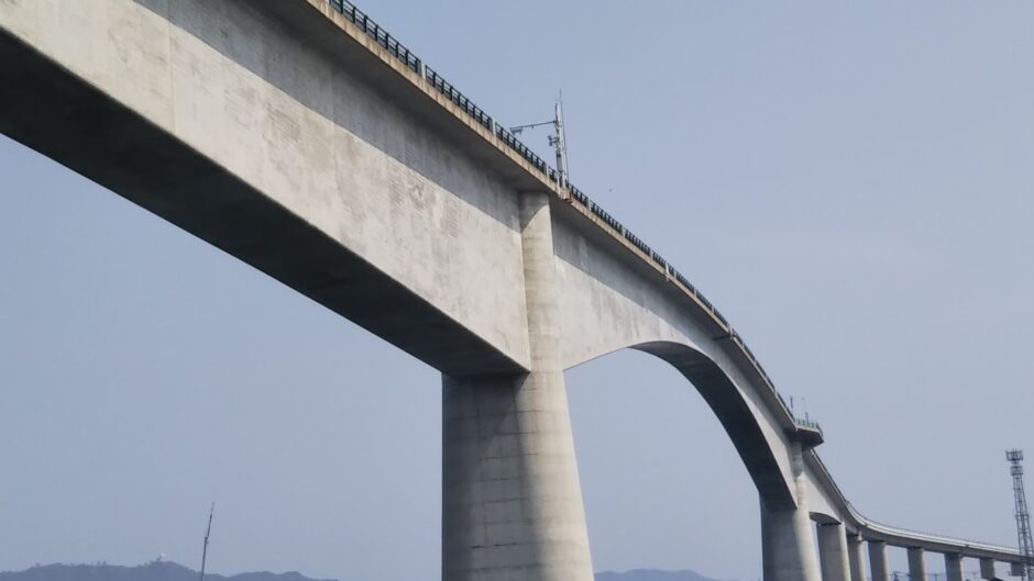 ”ベタ踏み坂”としてテレビCMで話題となった橋です。PCラーメン構造という形式で、急勾配を実現しつつ、大型船が下を通れる高さを確保するために強固な構造が採用されています。