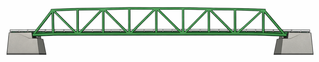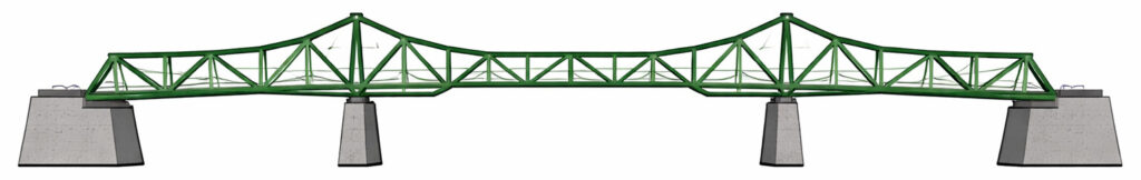 2つの橋脚の間に、1つのトラス橋が乗っている最も基本的な構造です。