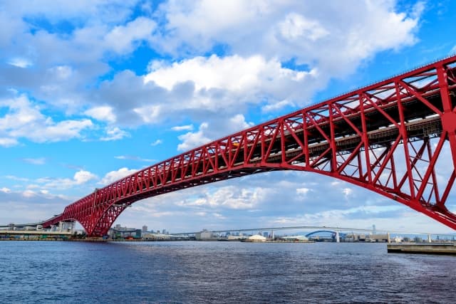 大阪港の赤いシンボルである港大橋は、トラス橋として日本では最大の支間長、世界でも第3位を誇ります。