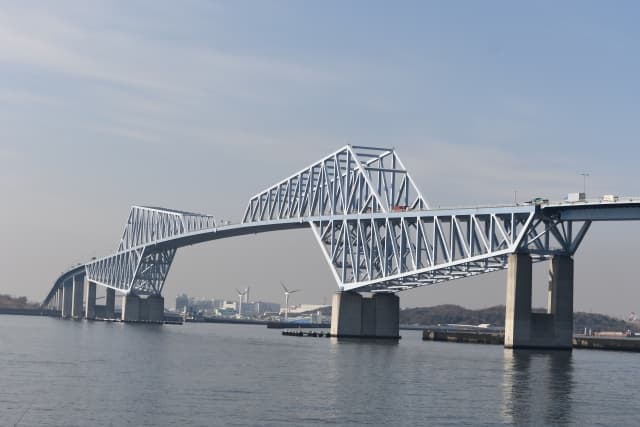 東京ゲートブリッジは、その特異なシルエットから”恐竜橋”の愛称で親しまれています。この橋は、羽田空港と東京港の関係で上下に制限が設けられており、その解決方法としてトラス構造が採用されました。